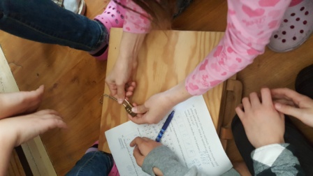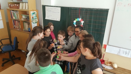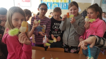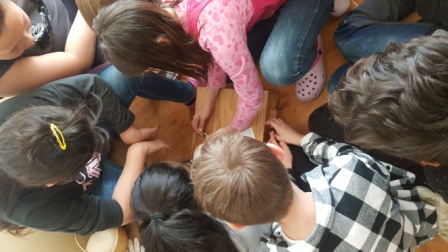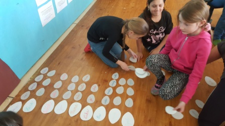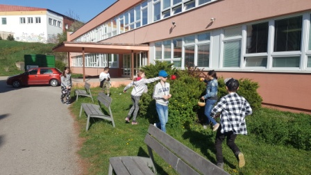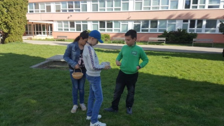 Hrali sme veľkonočnú hru. Hľadali sme vajíčka v tráve v okolí školy, plnili sme úlohy, získavali indície, a hádali heslo na otvorenie zámku, aby sme mohli otvoriť veľkonočný poklad.